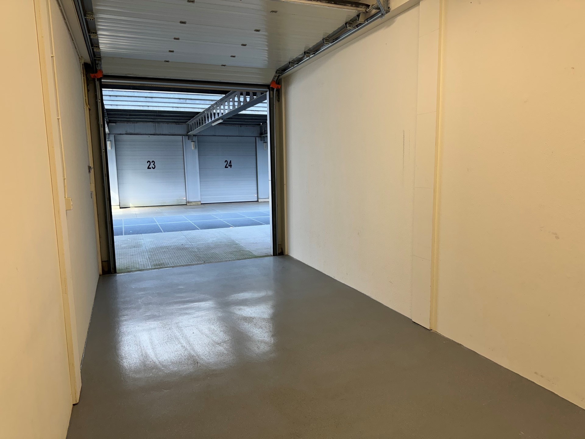 Te huur multifunctionele opslag- werkruimte op de eerste verdieping van een kleinschalig complex. Deze luxe box is zeer geschikt voor verschillende doeleinden. Ideaal voor onder andere loodgieters, stukadoors, web shops, timmerbedrijven, cateraars etc. en voor degenen die extra opslagruimte zoeken. Deze ruime opslagruimte (ca 3.40m x 8.50m) heeft een hoogte van maar liefst 3,40 m. De ruimte is voorzien van elektra (220v), water, verlichting (led), 3 wandcontactdozen en elektrische overheaddeur (hoogte 3.20m).De unit is gelegen op de eerste verdieping in het project ’t Heengilde. Het terrein heeft verlichting en camerabeveiliging en een gemeenschappelijke toiletruimte.