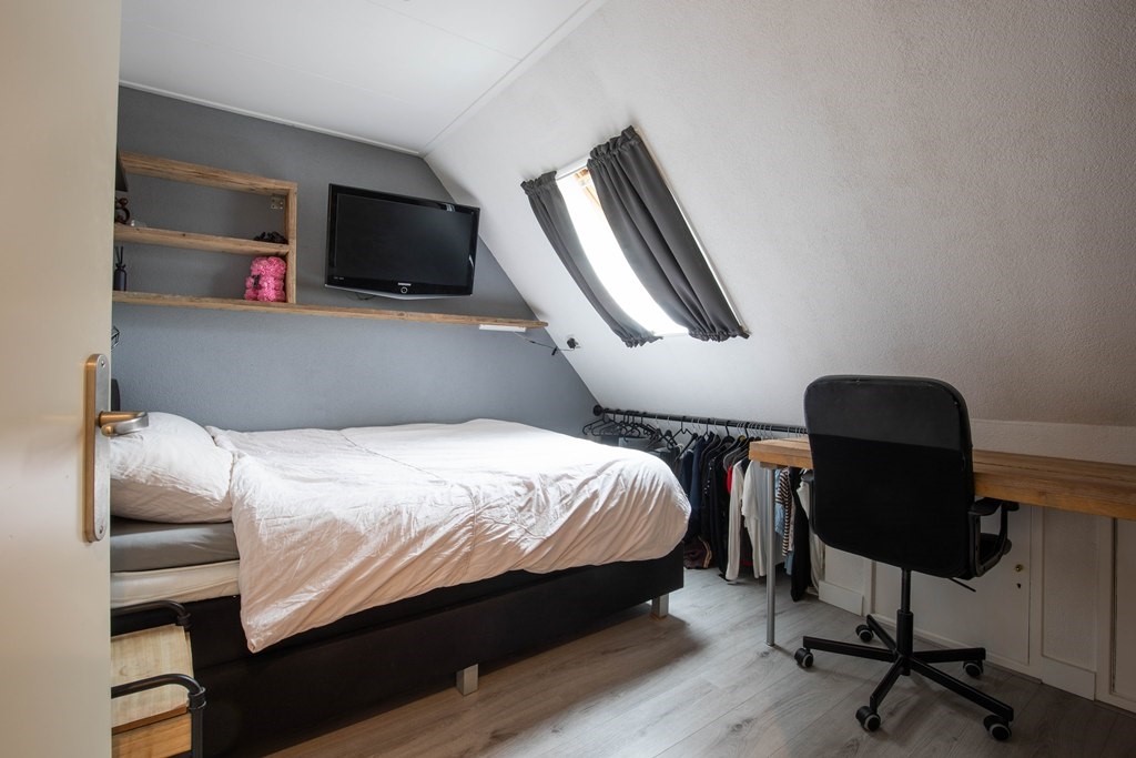 De tweede verdieping biedt opnieuw verrassend veel ruimte. Hier bevinden zich een overloop, een via vlizotrap bereikbare bergvliering, een zeer royale slaapkamer aan de achterzijde en een tweede slaapkamer aan de voorzijde. Door de gehele woning is veel bergruimte aanwezig, onder andere in vaste kasten en knieschotten.